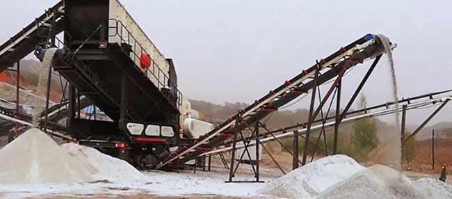 2、废弃混凝土碎石机的长度短,不同的碎石机械分别安装在独立的可移动的底盘上,轴距短,转弯半径小,可以在普通公路及工作地区内灵动行驶。